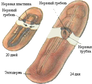 вскоре после формирования нервной трубки, когда с каждого ее боку как раз