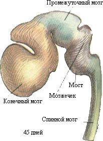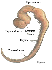 На 30-дневной стадии можно распознать основные отделы мозга, хотя и